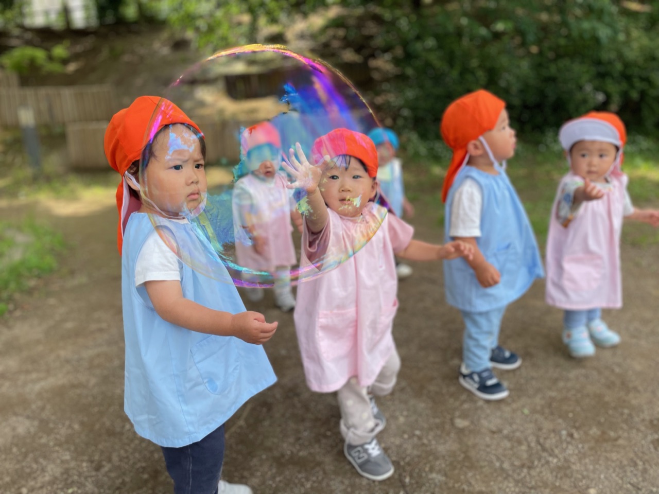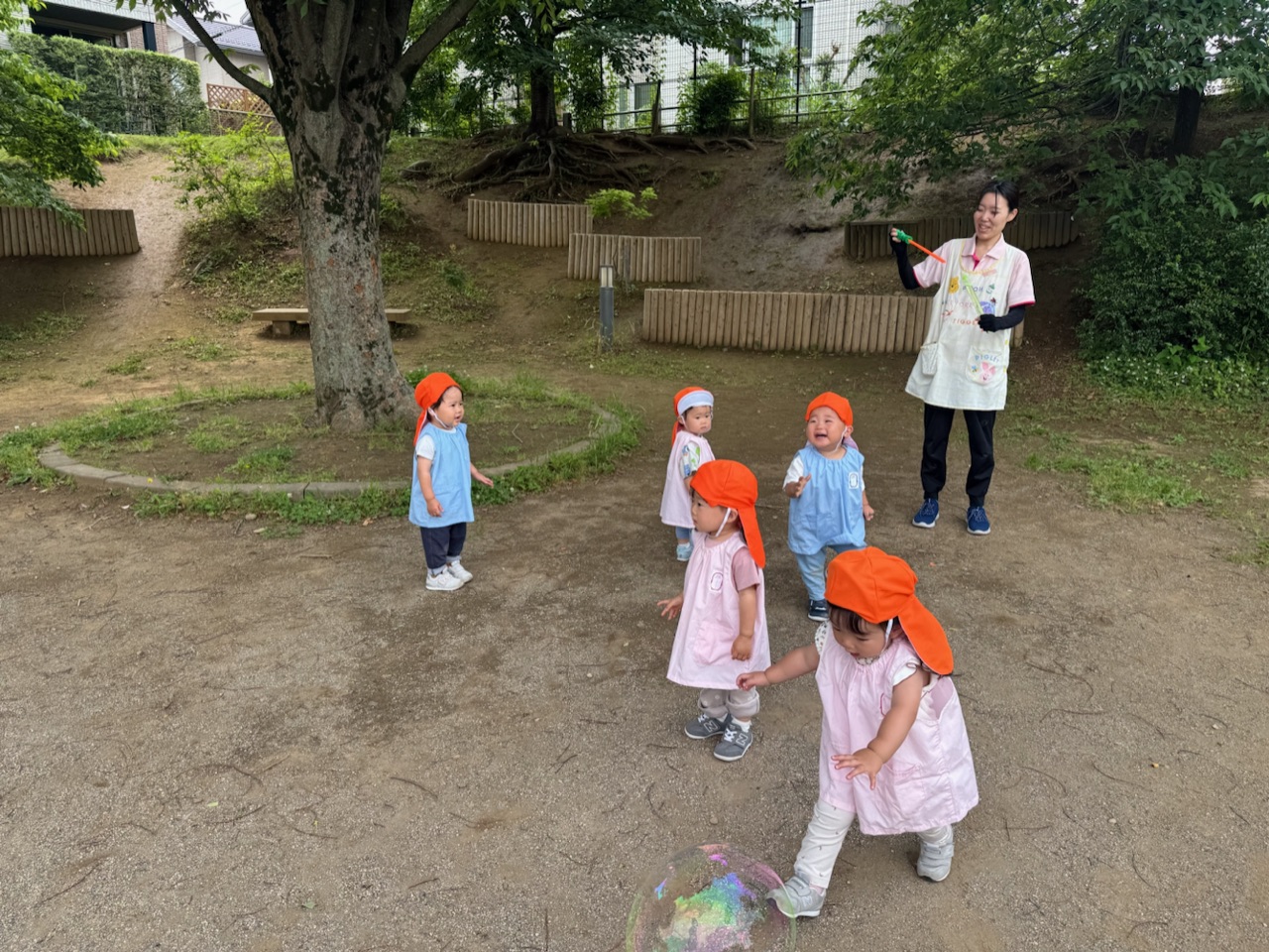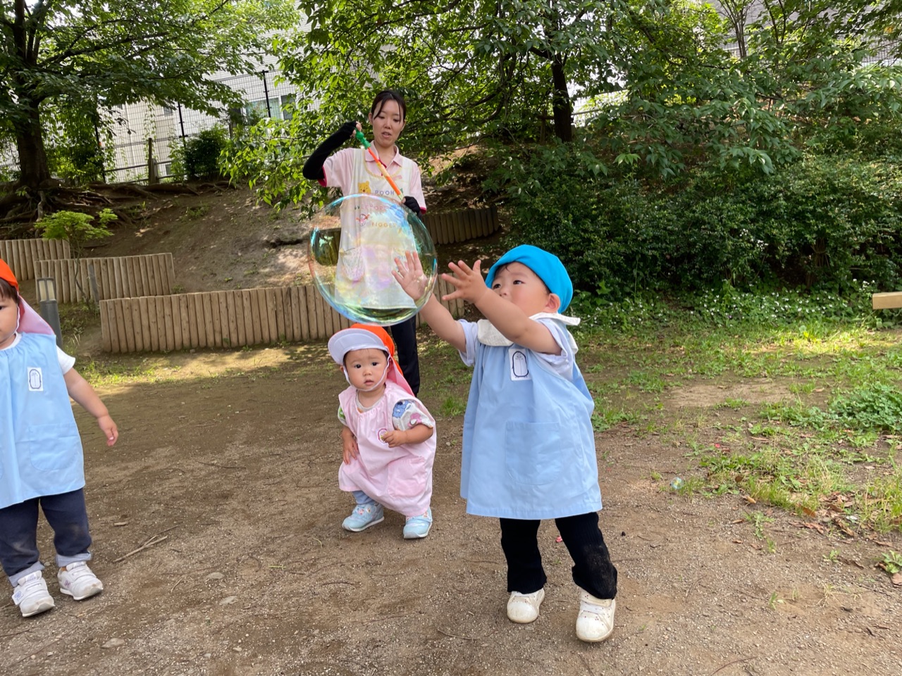 ひよこ組さんとうさぎ組さんは公園でシャボン玉や滑り台、鉄棒で遊びましたよ😊