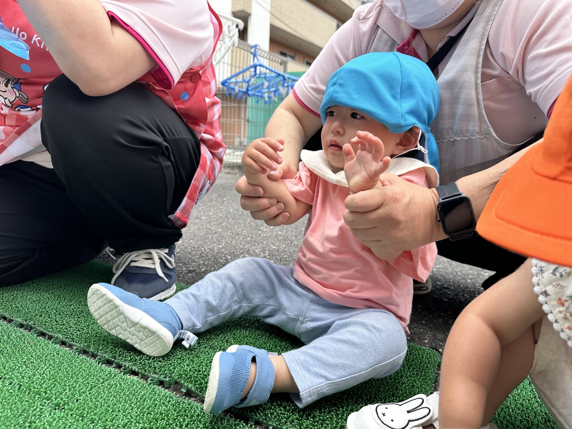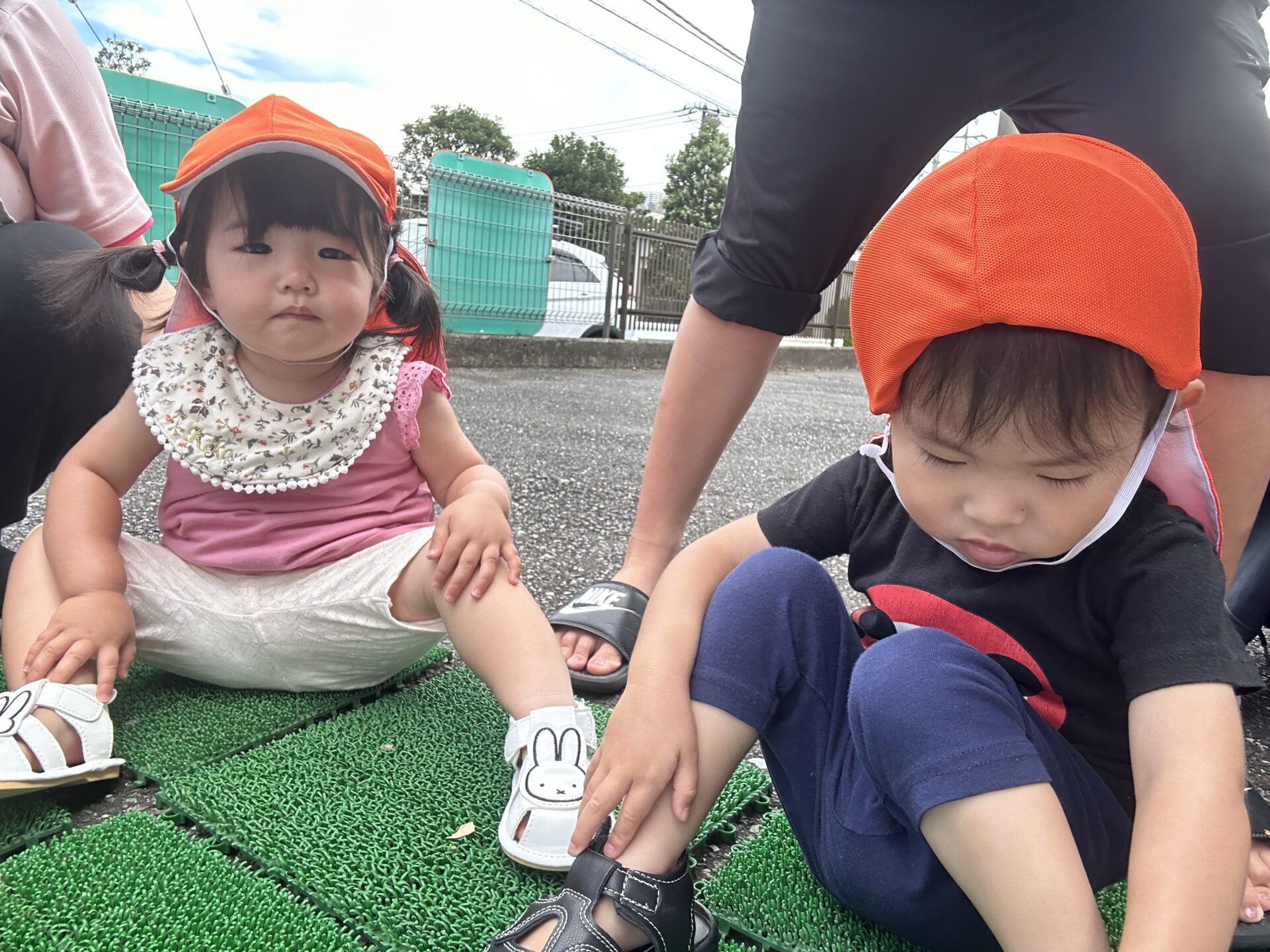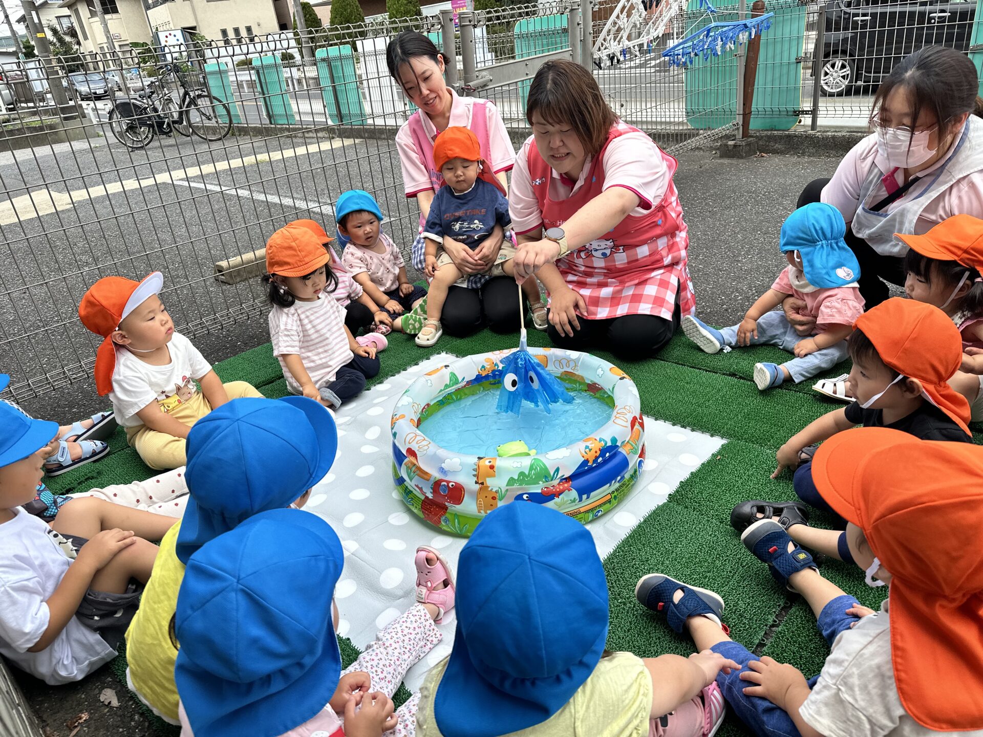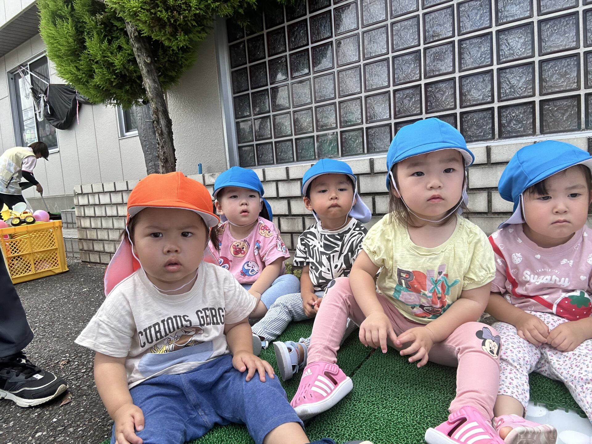 少し風があったのですがひよこ組うさぎ組さんは、水遊びをこあら組組さんは、英語をやった後に水遊びをしました😆