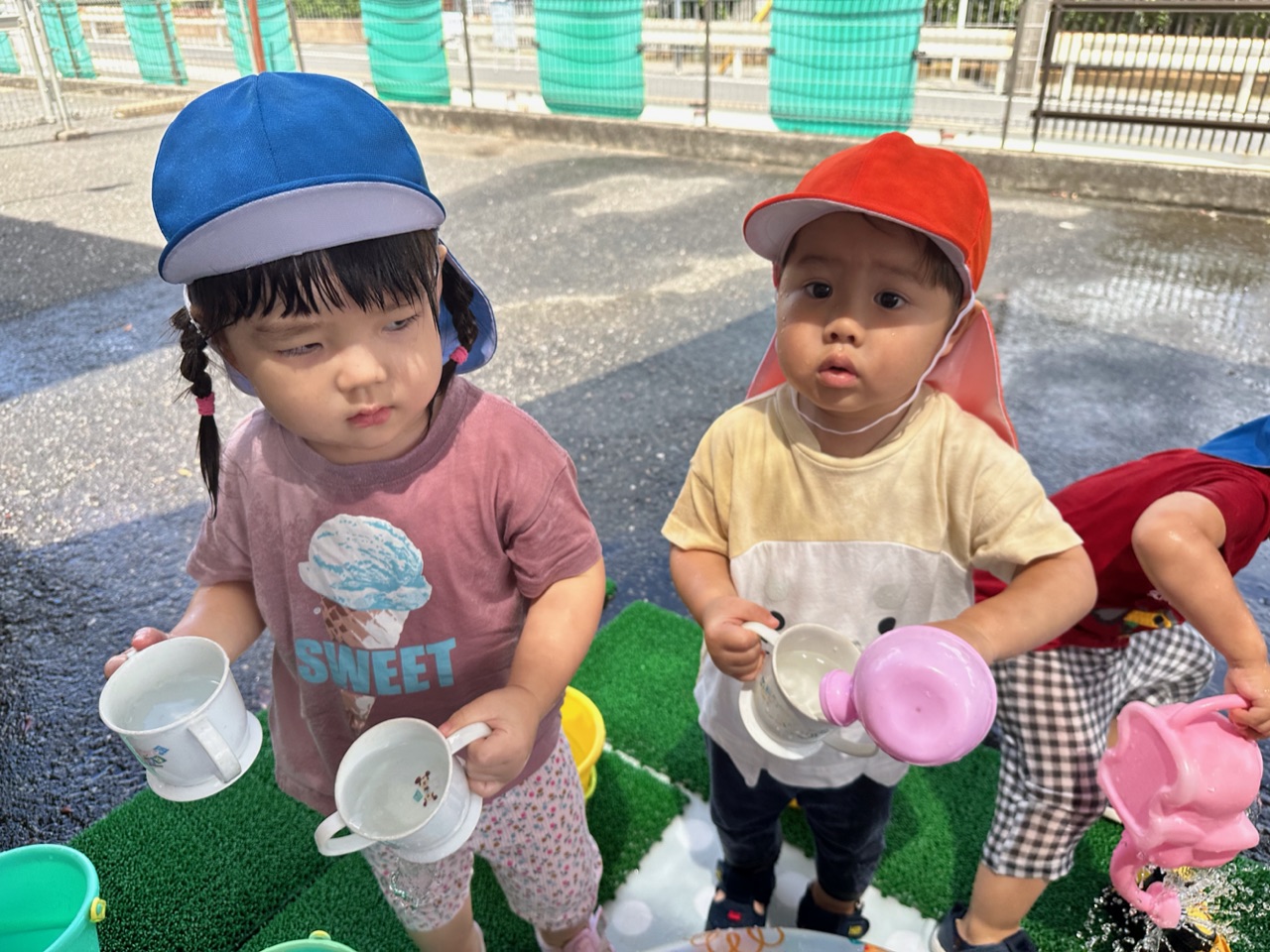 今日も水遊びをしました!沢山水に触れる時間を取れてみんな集中して遊んでいました😊✨