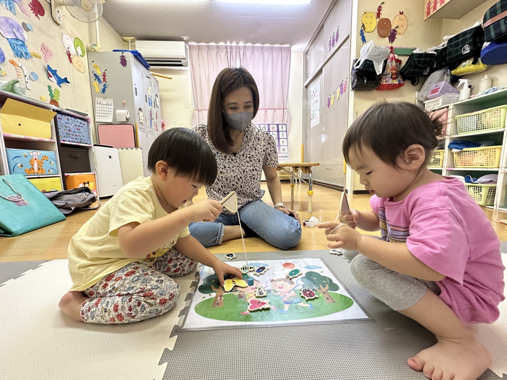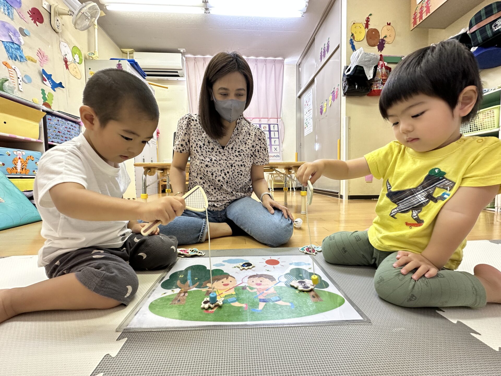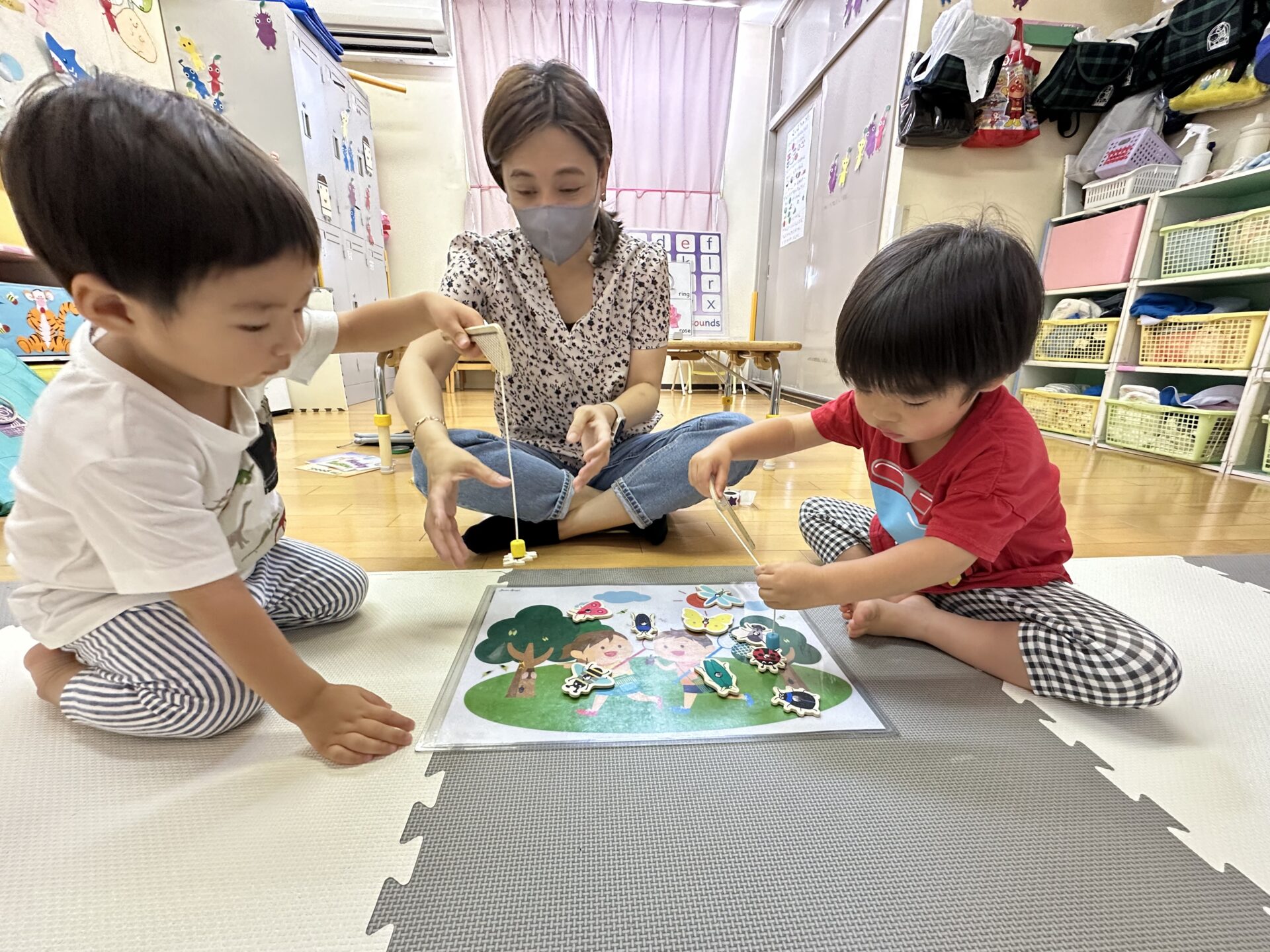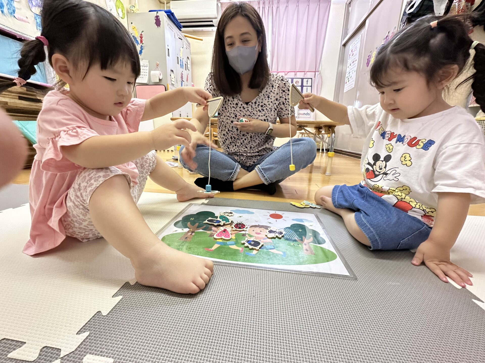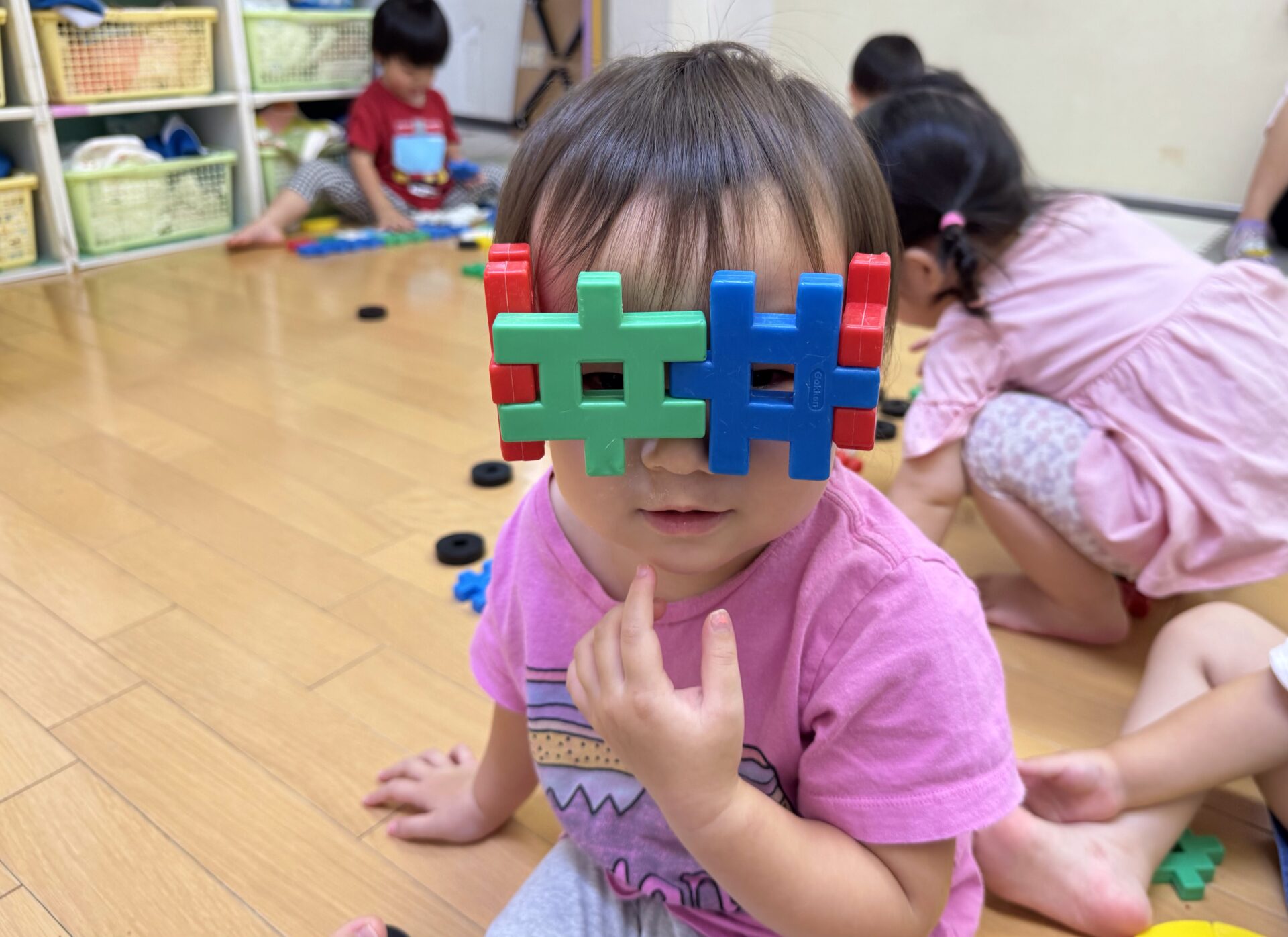 今日も暑いですね💦こあら組さんは、英語教室でした。今週も虫とり対決をして、楽しく、英語を学んだあと、ブロックで遊びました。お友だちが作った、メガネが大人気でした。