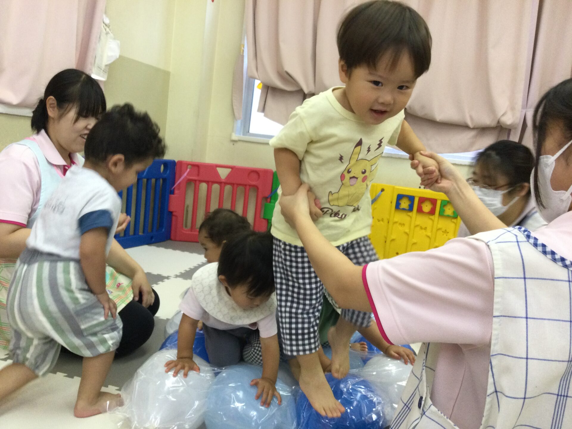 ひよこさんうさぎさんは、新聞紙ビリビリ!をして、ニコニコで過ごしました🎶風船🎈マットも大人気でした🤗