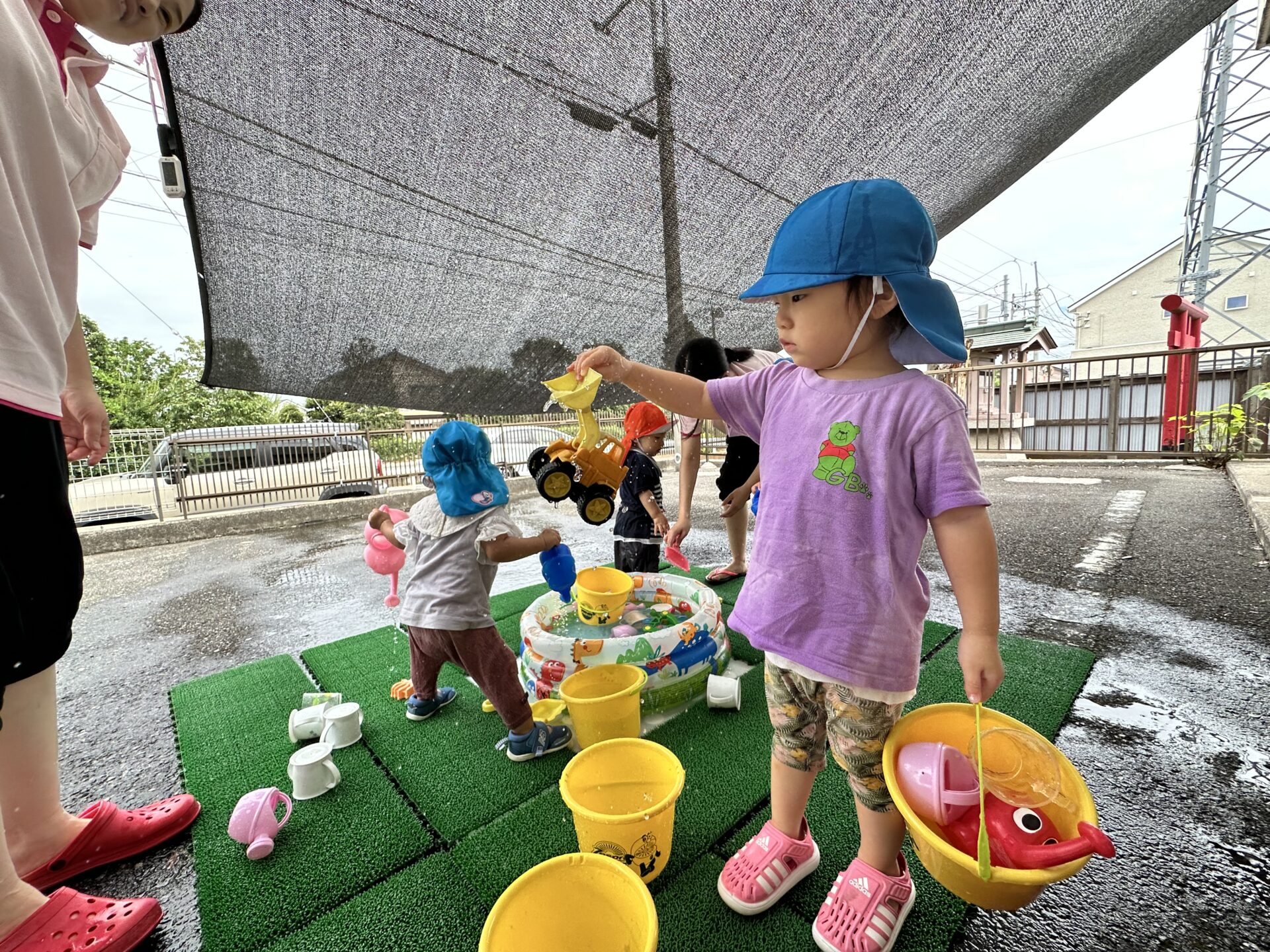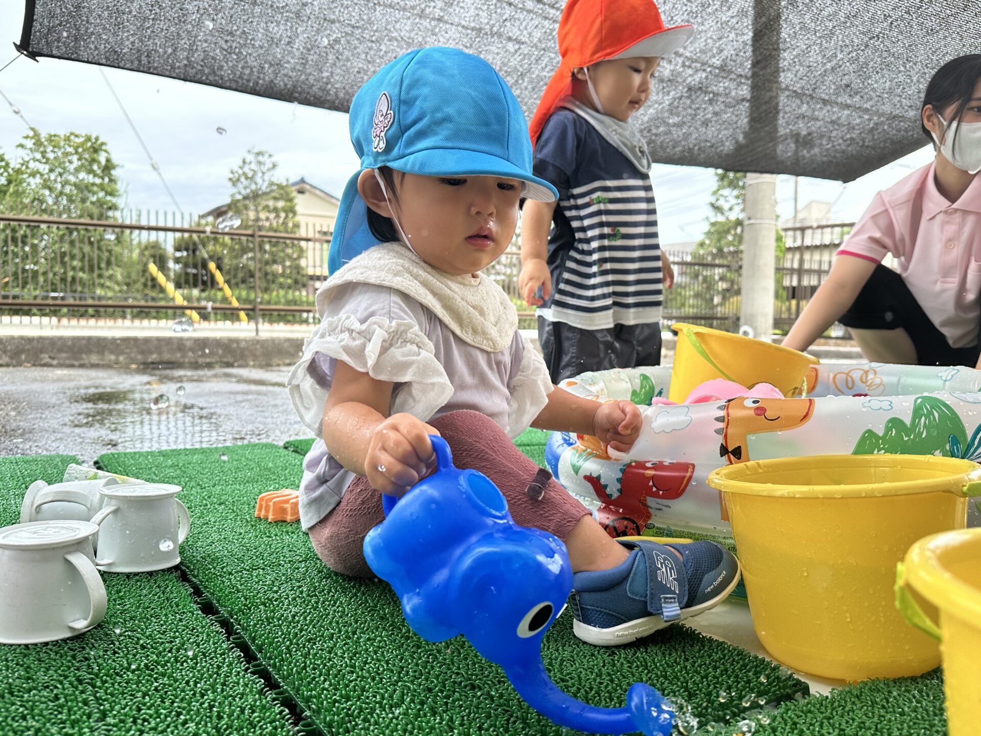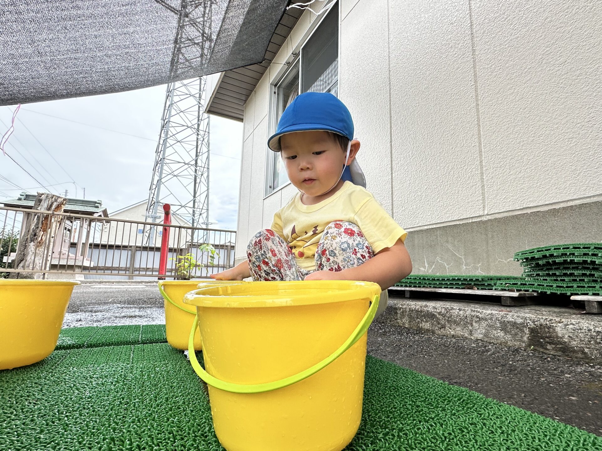 今日は、気温もちょうどよかったので、水遊びをしました☺︎水遊び前のどんぐりマン体操もみんな上手に踊ってくれました🎶