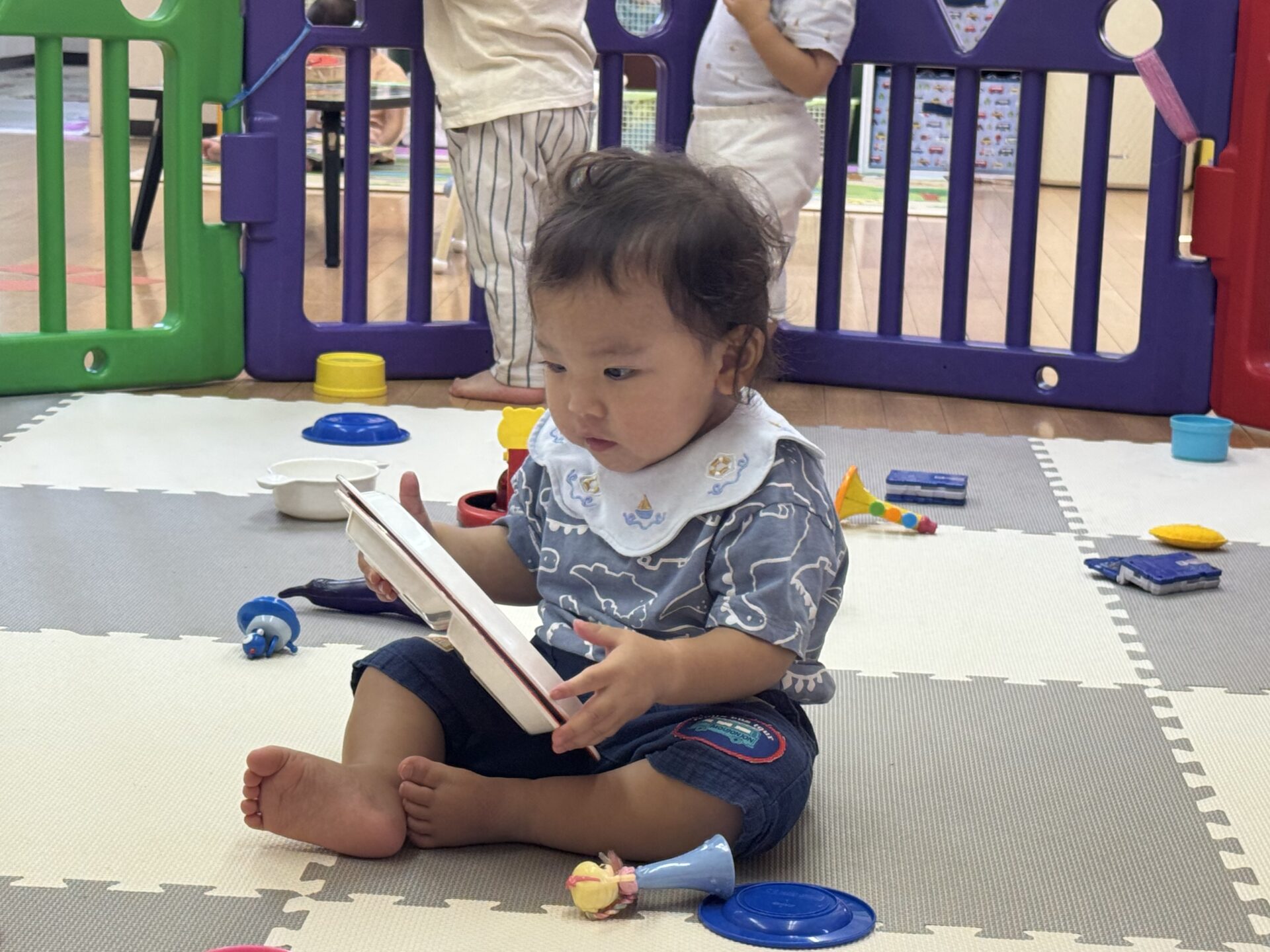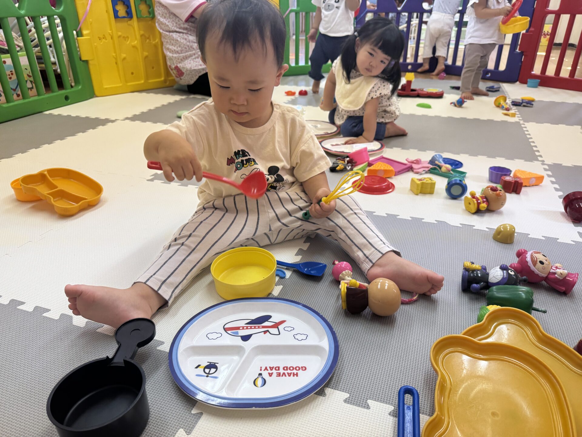 うさぎ組とひよこ組はおもちゃで遊びつつ、順番に秋の製作の続きを行いました🌰🍇