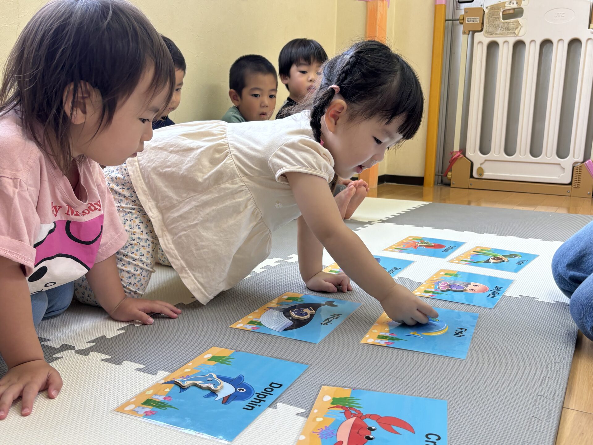 こあら組は英語教室がありましたよ。海の生き物の名前を教わりましたよ(o^^o)
