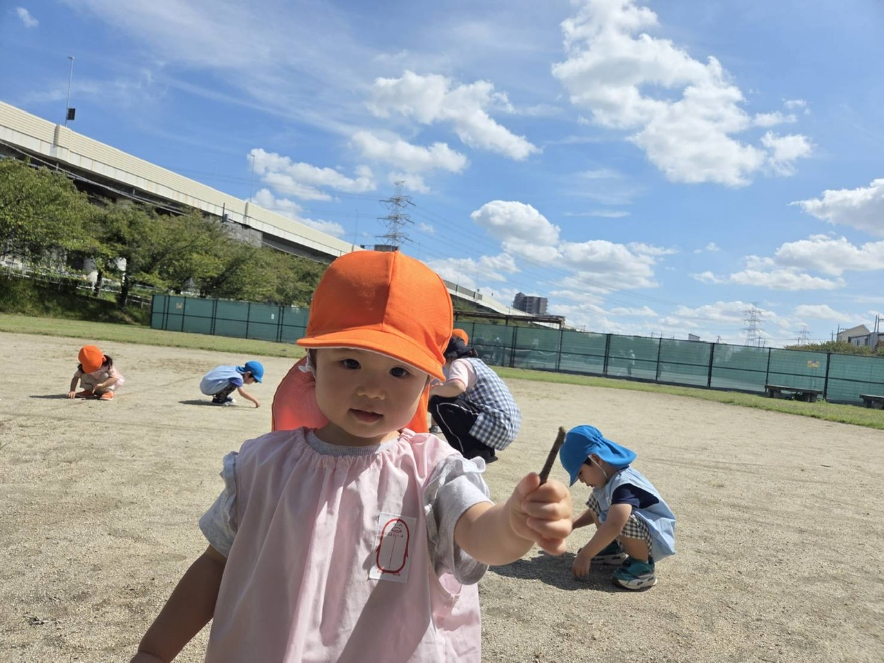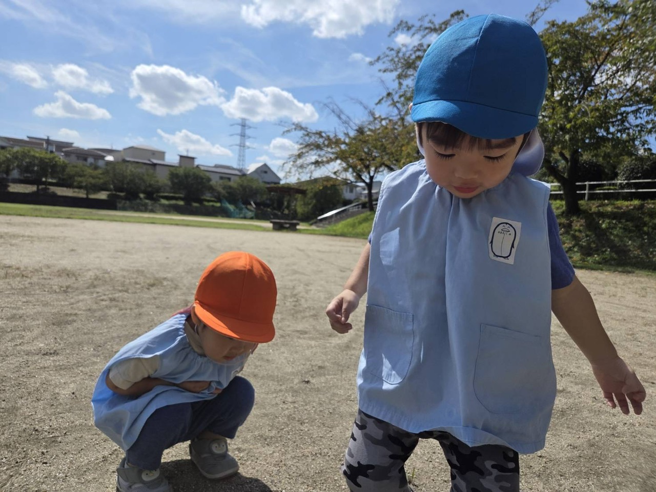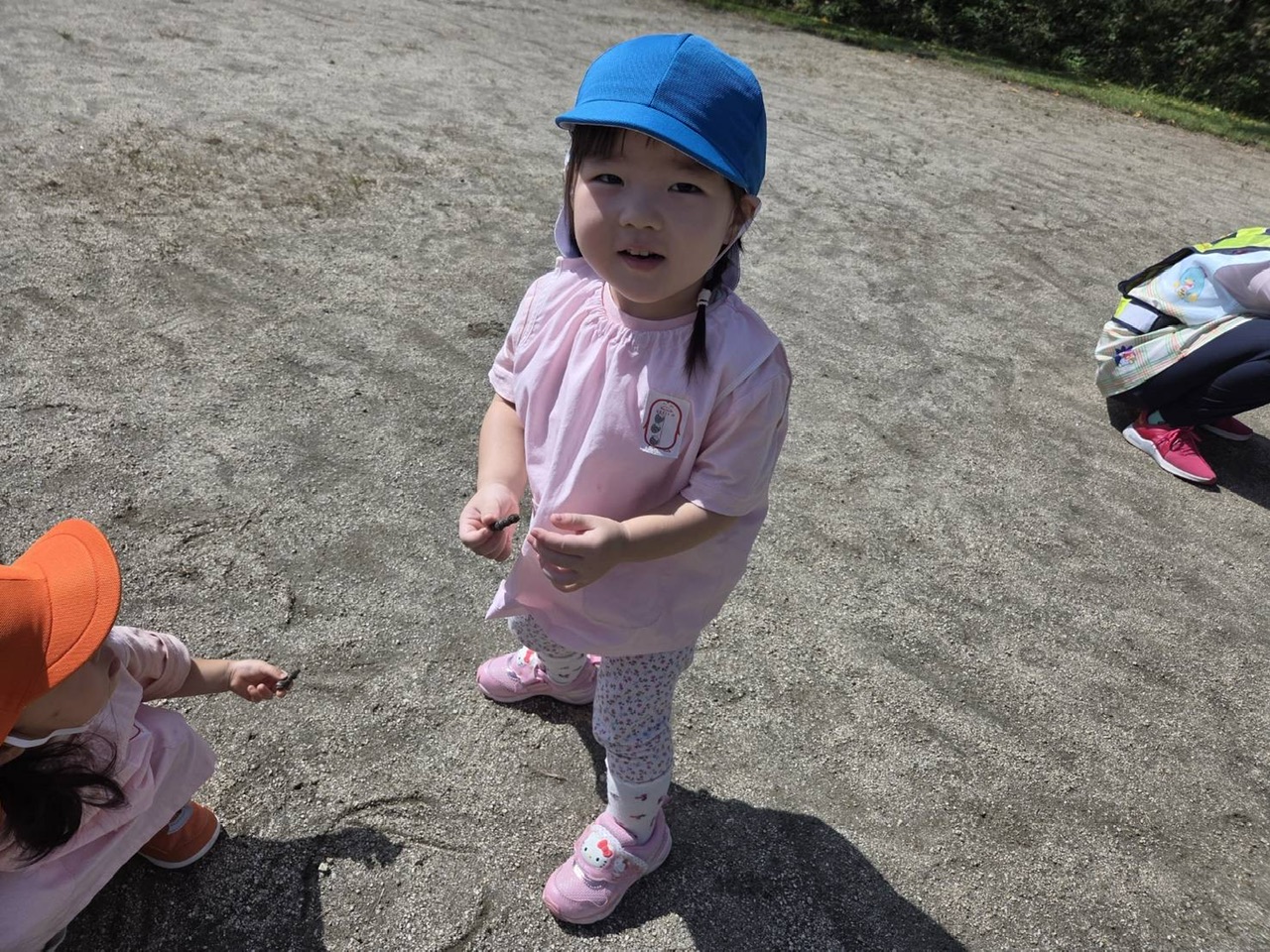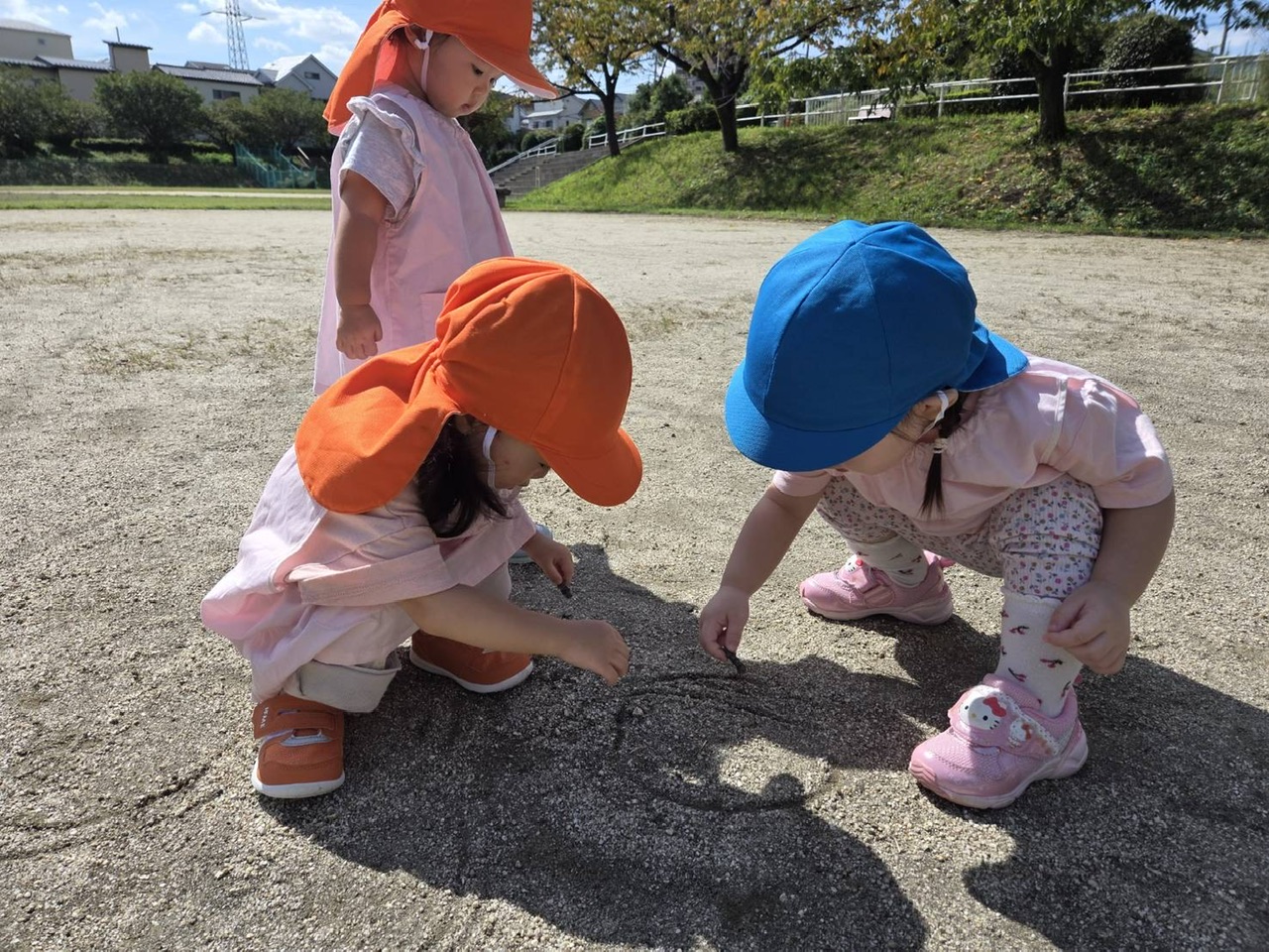 虫を捕まえたり、かけっこしたり、砂に絵を描いたり^ – ^