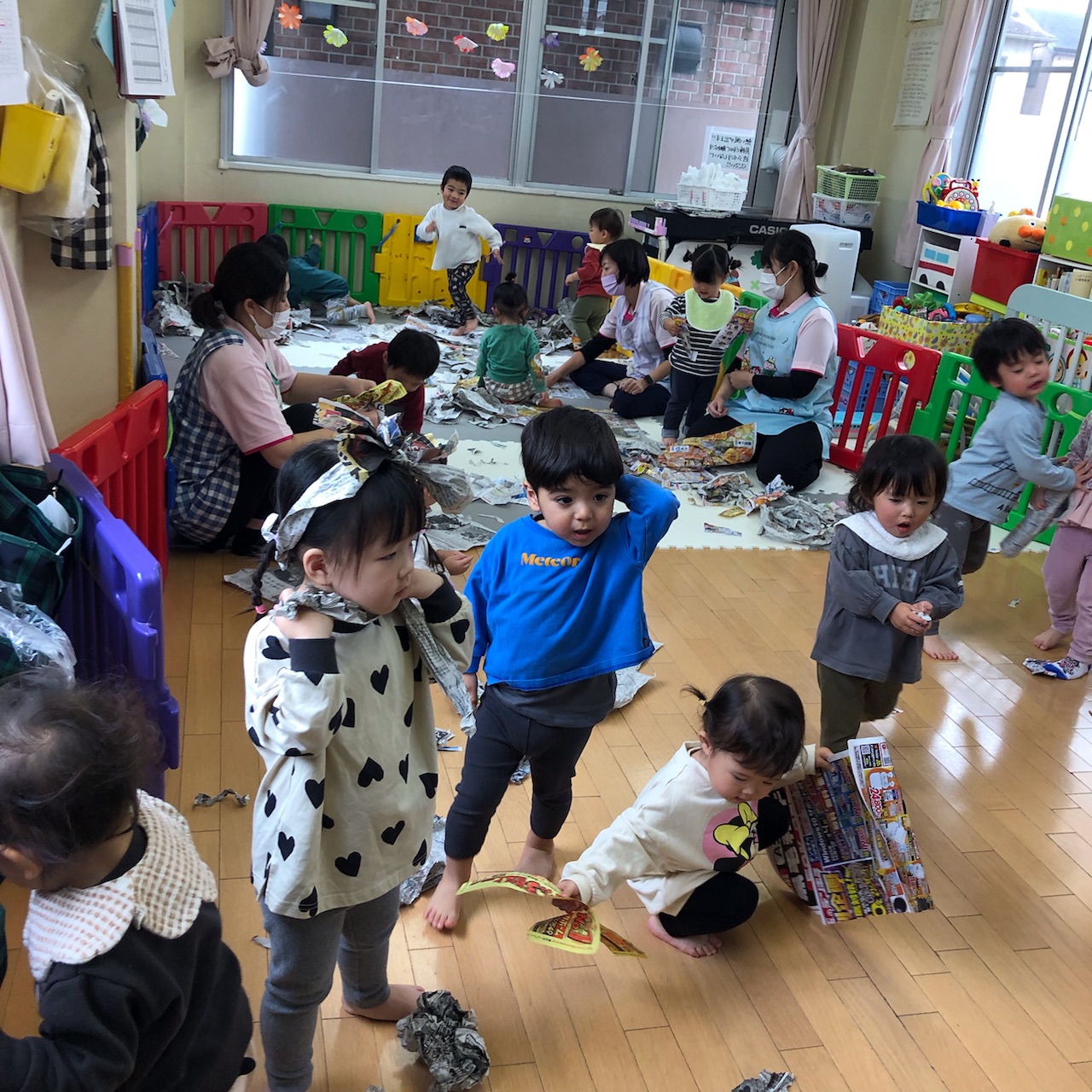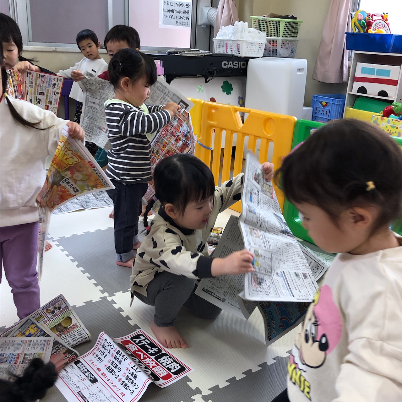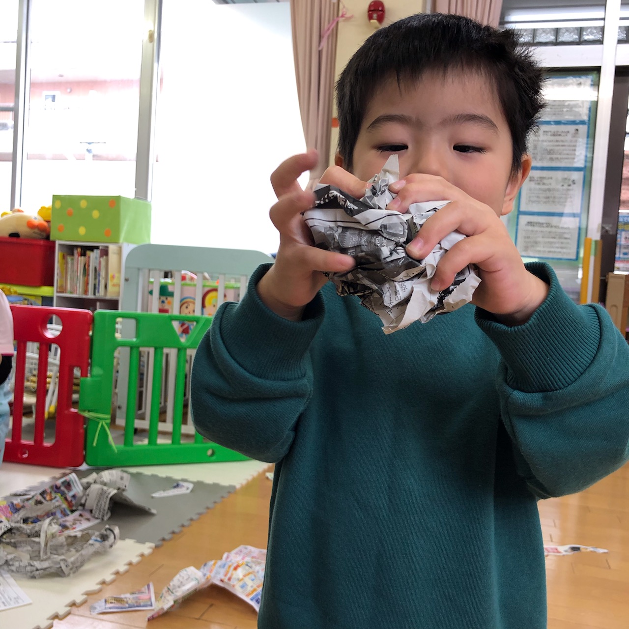 体操をした後、新聞紙で遊びましたよ^ – ^
