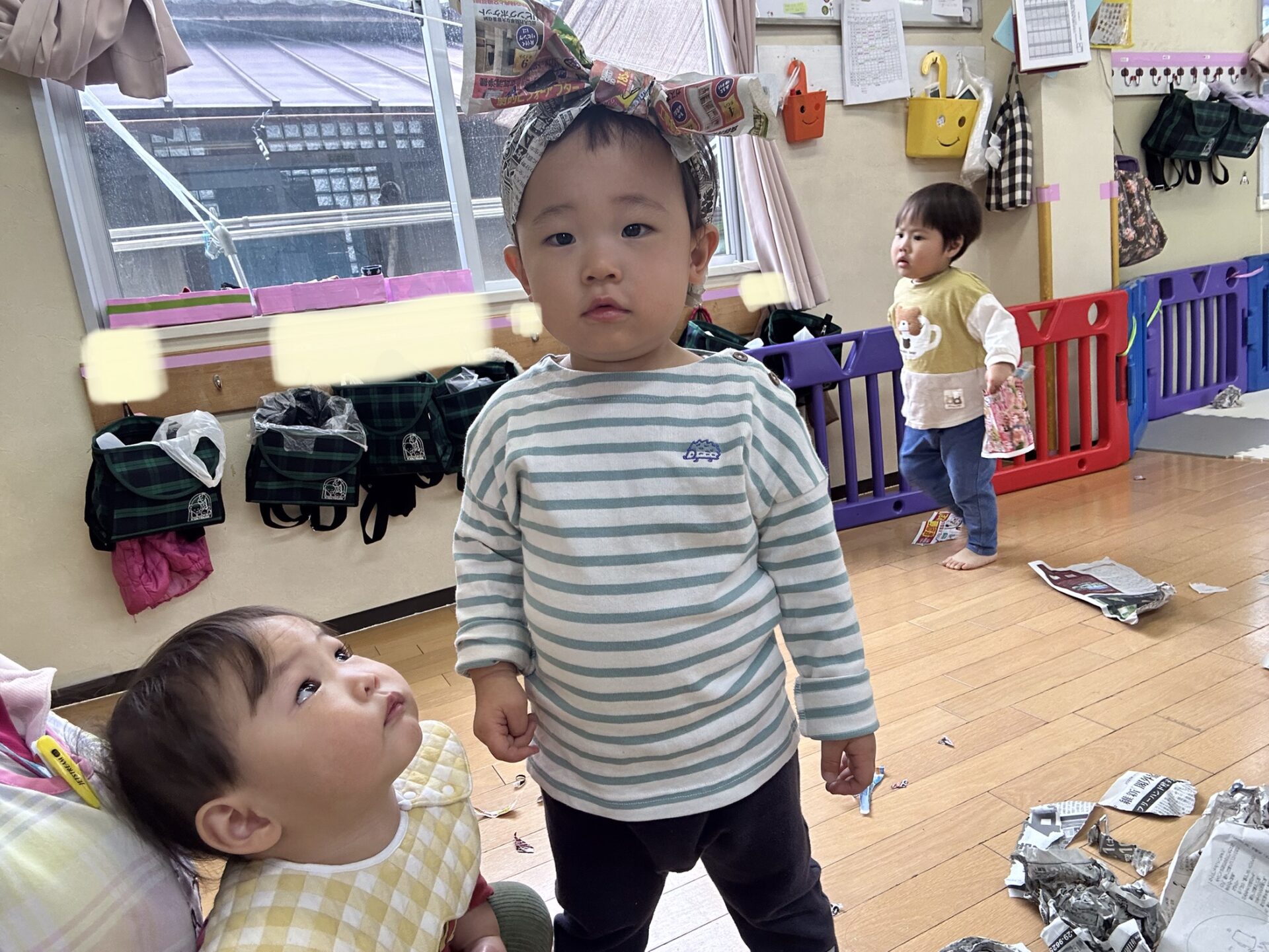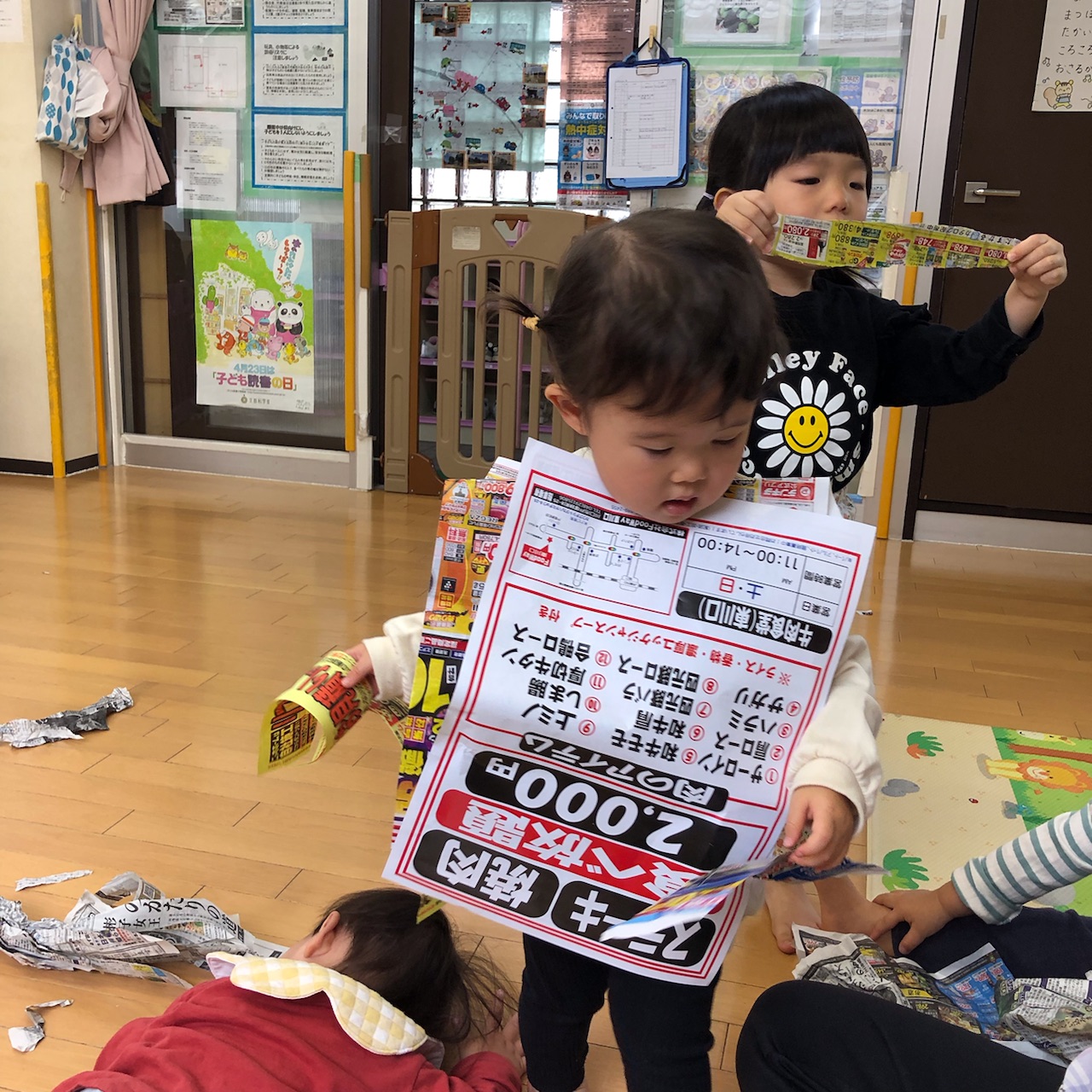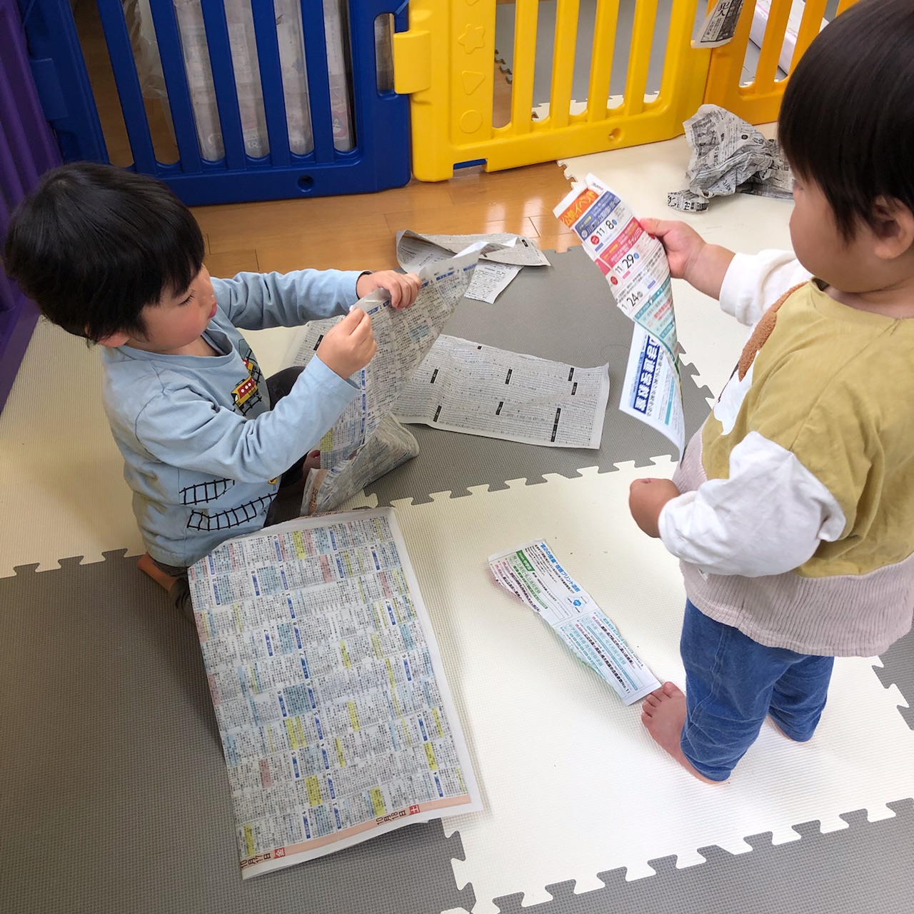 体操をした後、新聞紙で遊びましたよ^ – ^