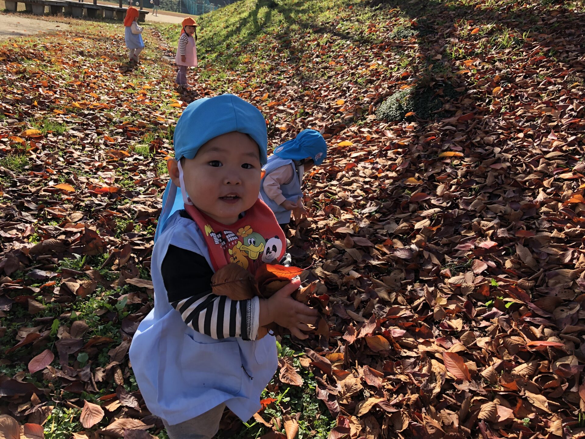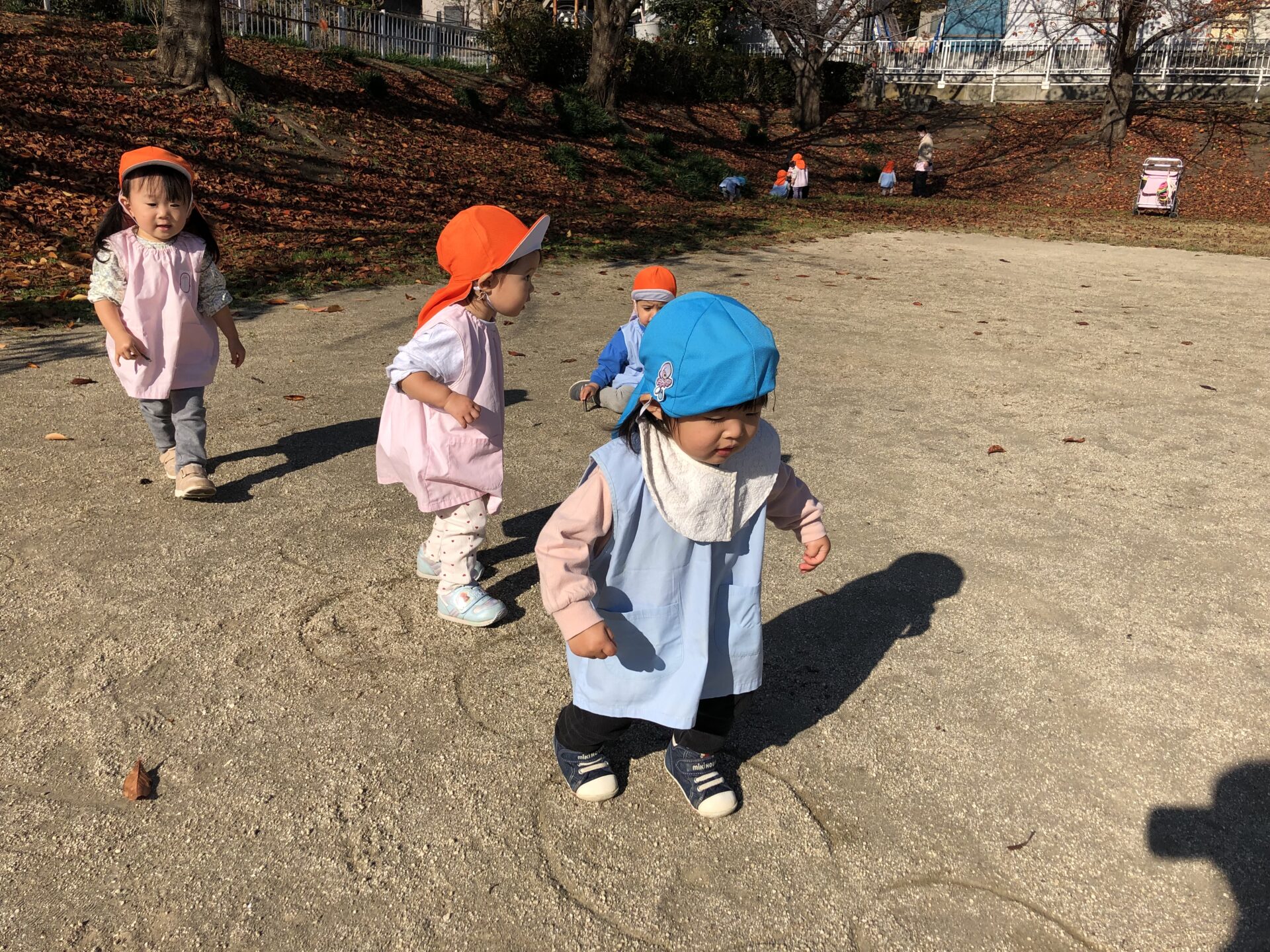 早いもので、今年も後1ヶ月で終わりですね。暖かかった今日は、うさぎ組さん、ひよこ組さんは、江川グランドに行きました。落ち葉がいっぱい🍂で楽しかったです♪
