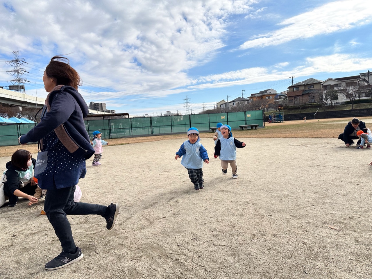 今日はみんなで近くのグランドへ行きました。風が吹くと少し肌寒く感じましたが、キッズハウスのお友だちは寒さに負けず!沢山遊びました😊✨